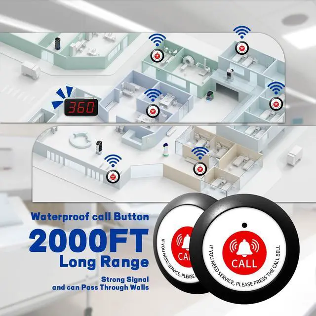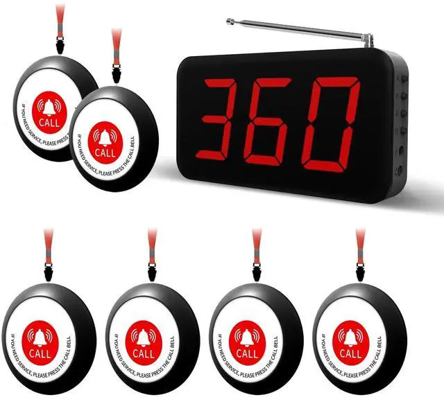 CONVENIENT AND QUICK OPERATION: Comes with one receiver and six waterproof call buttons. There is a plug and play, simply press the call button to see the call number displayed on the screen. Pairing is done before shipping, so there's no need to reset after receiving the product. ^^