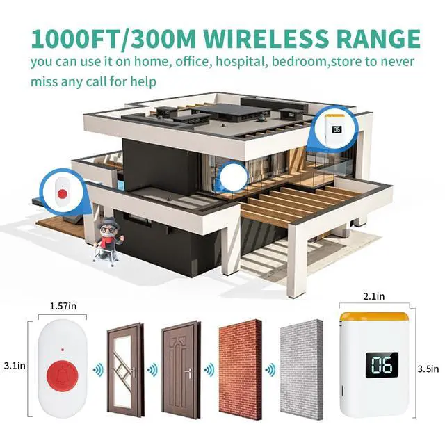 Suitable for people: This wireless portable nursing pager system is suitable for children, the elderly, pregnant women, paralyzed patients, and the disabled. We would like to make caring for your loved ones easier Start an easy caregiving and care journey from here toda