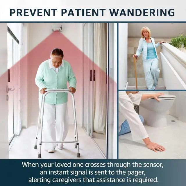 SYNLETT Portable Caregiver Pager Bed Alarm Alert and Wireless Motion Sensor is designed for various settings. This fall prevention system and bed alarm system comes with one portable pager and one wireless motion sensor. Caregiver Pager has an audible alarm and it is small enough to be carried in the pocket or clipped to a belt. The call buttons can alert caregiver to respond to residents when in need of assistance. The wireless motion sensor detects movement up to 12ft* away. It alerts the pager of a persons activities when the person interrupts the motion sensors infrared field.