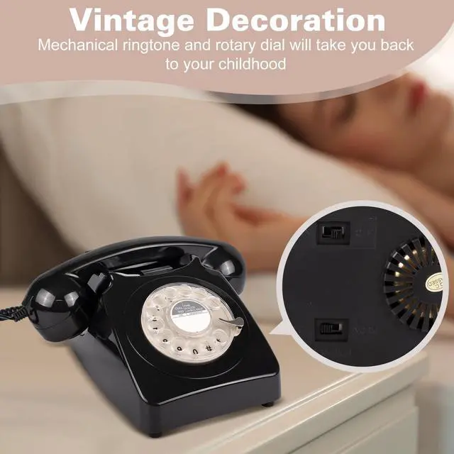 Home Creative Retro Phone, Corded Landline Home Phone, Analog Decorative 1960s' Old Fashion Desk Phone, Classic Rotary Dial Vintage Telephone with Bell Ringer for Home/Office/Hotel/School