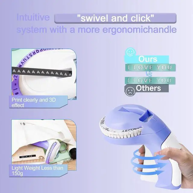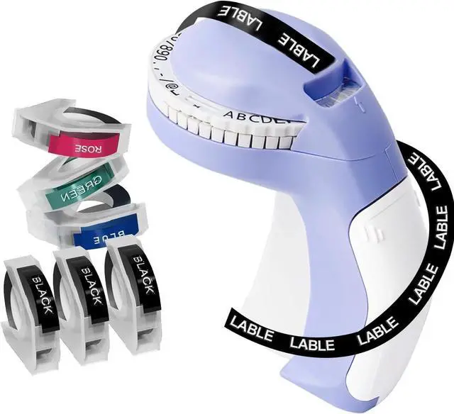Creative Label Making Machine : You can use this manual embossing style to add visual fun to your handmade greeting cards, photo albums, scrapbooks, document sorting, home clothing boxes, shoe boxes, seasoning boxes, various bottles, and more. Simply rotate the dial, select letters, numbers, or symbols, and then squeeze the handle.