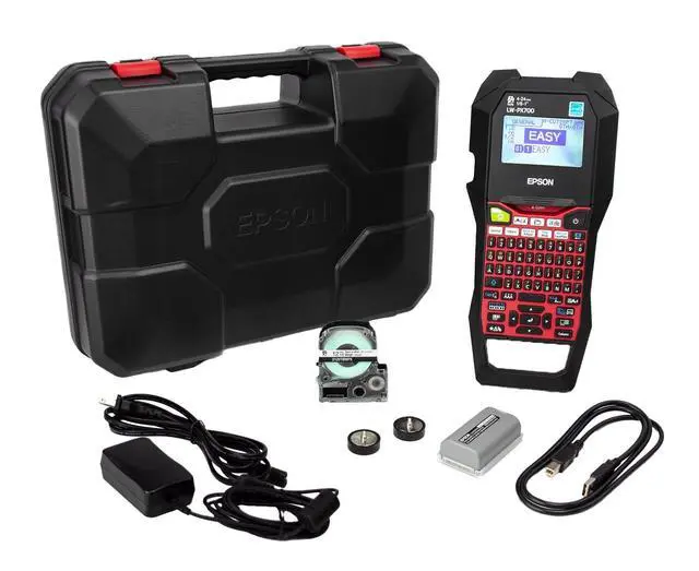 The LABELWORKS LW-PX700PCD industrial label maker kit comes with the LW-PX700 label printer, an AC adapter, a lithium-ion battery, a cartridge of 212VTBWPX standard industrial tape, a USB cable, Label Editor software, magnetic attachments, a guide, and a black industrial hard case. The LW-PX700 is a portable label and wire marker printer with exclusive time- and cost-saving features for creating custom and compliant labels up to 1 (24mm) wide. Organize tool cribs, identify storage bins, make safety labels, mark cables and wires, tag assets and more.