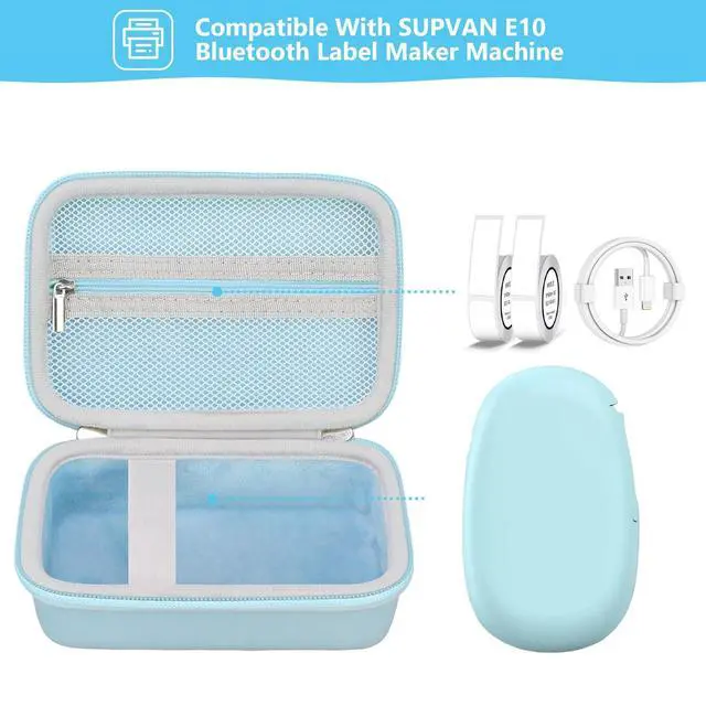 ^^ UNIQUE DESIGN: The supvan e10 label maker case features a double zipper design, allowing you to easily take out your beloved mini supvan E10 label machine. Extra zipper mesh bag for storing supvan e10 adapted label print paper, usb cable and other small accrssories. Elastic band keeps your supvan e10 label printer firmly in place without worrying about it sliding and damaging.