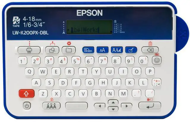 The LW-K200PX-DBL makes it easy to print stunning, professional labels for your home office or small business ^^ INSTANT LABELING - Labeling has never been faster or easier! With the LW-K200PX-DBL, quickly type your label using the full QWERTY keyboard, select from 14 fonts, preview your design, and print instantly. This efficient label maker ensures you stay organized while saving time and money, perfect for small businesses and home offices. Includes one black-on-white standard (PET) label tape cartridge (212BWPX). ^^ BUILT IN CUTTER - This label maker features a convenient built-in manual cutter, eliminating the need for scissors and ensuring precise, waste-free labeling.