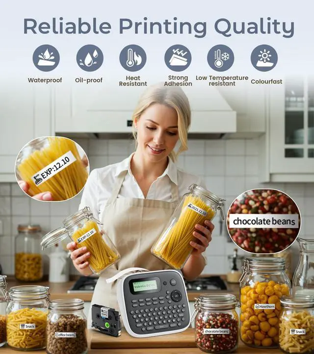 &: VolenGo D210s inkless label maker creates laminated waterproof labels resistant to scratches, oils, and extreme temps (-40F to 212F). Heat transfer tech ensures 10-year durability ^^