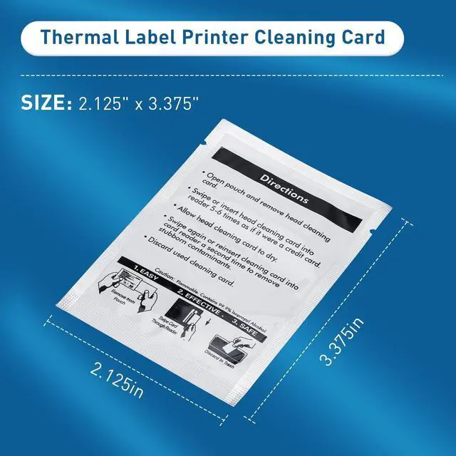 Daul Side Cleaning Card Dimensions-Length: 3.3", Width: 2.1 '', Thickness: 0.03" / 0.711 mm (standard credit card thickness that are to thick to fit inside a card printer/card) ^^ Our print head cleaning cards do a good job of cleaning the label printer, safely and effectively cleaning for Dymo LabelWriter print heads. Use once or twice a month, or when print quality deteriorates. The use of cleaning cards can improve print quality and extend the service life of label writers ^^ The cleaning cards have a certain hardness and thickness, high quality materials so that after treatment will not leave a variety of residues. ^^ Includes 20 for Dymo Label Maker 4XL printer cleaning cards, Our thermal printer cleaner are upgraded and are 100% meticulously tested before leaving the factory to ensure that each product performs optimally. ^^ If you have any questions about our Printer Cleaning Cards, Please note that we are always here to help. Please contact us.