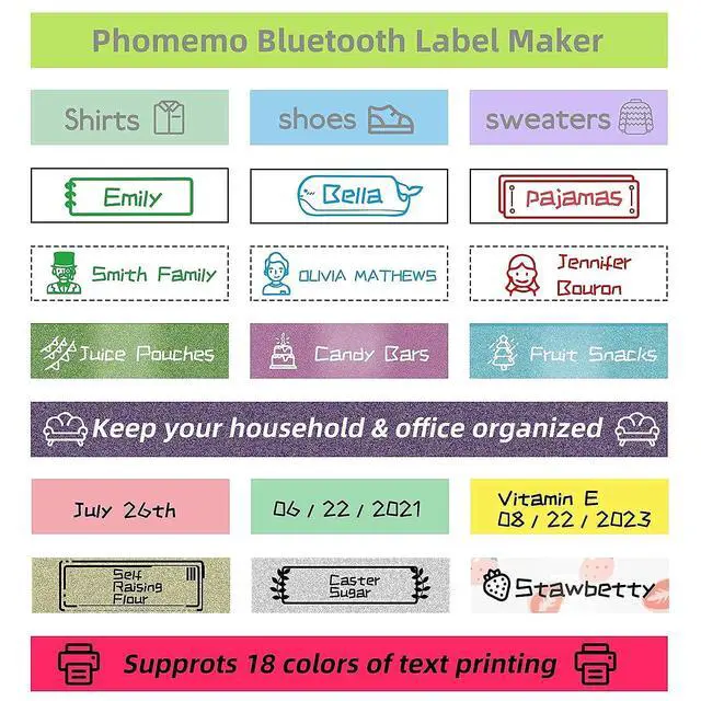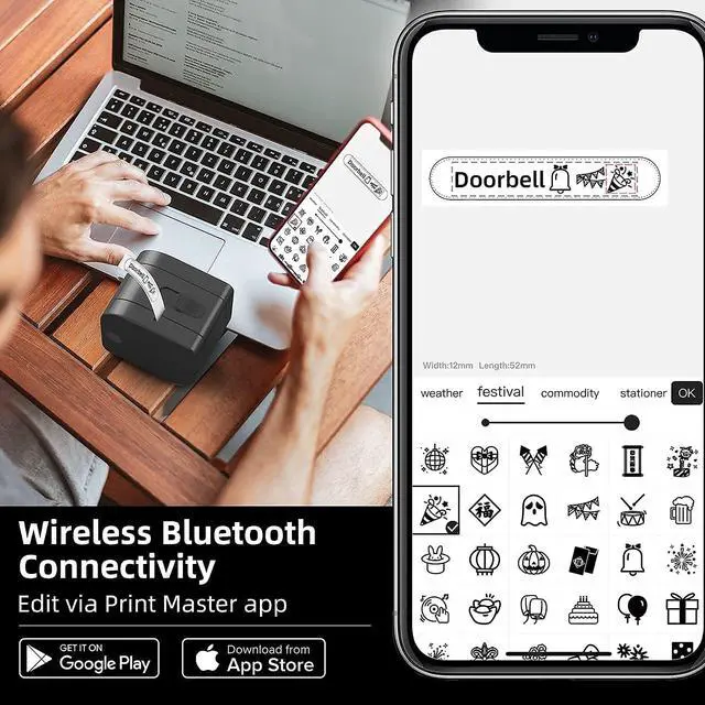 Connectivity: With a Bluetooth connection and Print Master app, designing and printing labels becomes effortless anywhere. The app offers 12 fonts, 62 borders and 1096 symbol stickers. Allow for 1-3 lines of text and minimum 2mm white space of the label ^^ Compact and