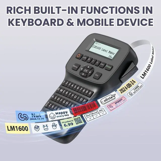 Dual Label Creation Modes : QWERTY Keyboard Label Maker - Swiftly create labels using the traditional QWERTY keyboard layout, with one-touch fast formatting keys, editing becomes a breeze. Bluetooth Smartphone Sticker Labeler - Connect your Android or Apple smartphone via Bluetooth to design and print personalized labels using our dedicated app. Enjoy wireless label creation at your fingertips.