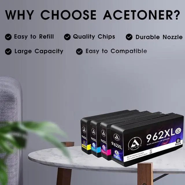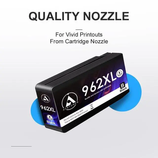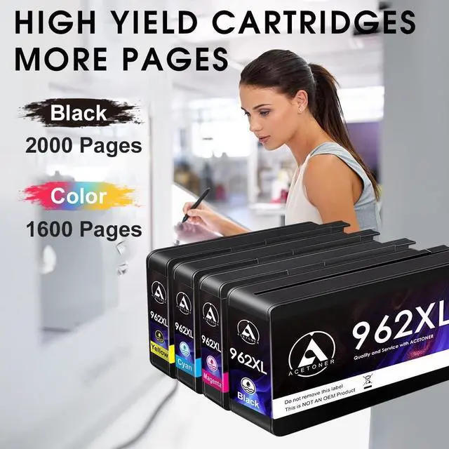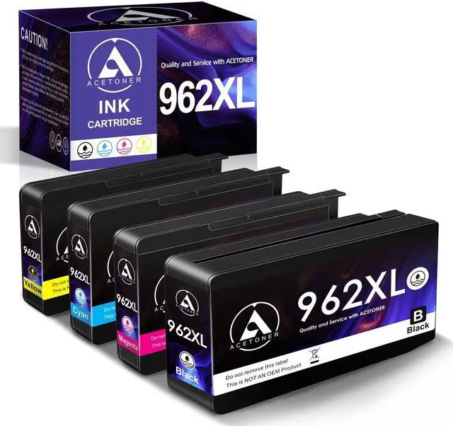FAST AND FACT WITH ACETONER INK, 962XL Ink Cartridge, up to 2000 pages for each Black and 1600 pages for each Cyan/ Magenta/ Yellow ink cartridge (NON-Original)Easy to