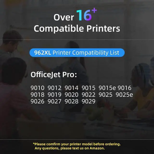 your printer modelStep 2: Tear off the plastic tape carefullyStep 3: Insert this ink cartridges into your printerTips: Please DO NOT touch the chip when you load the ink cartridge in printerCompatible printer models: OfficeJet Pro 9010 9012 9015 9015e 9018 9020 9025 9025e 9026 9027 9028 9029Colorful
