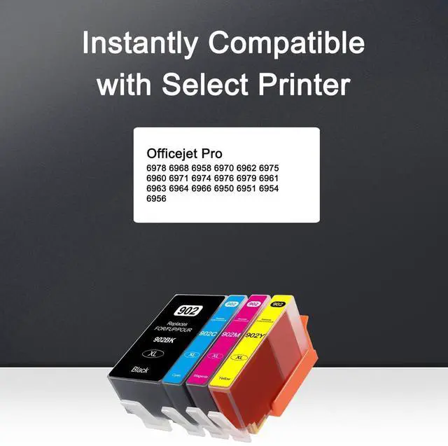 Box Includes: 4 Packs Remanufactured 902XL ink cartridges -1 Black, 1 Cyan, 1 Magenta, 1 Yellow ^^