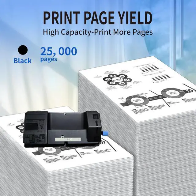 Page Yield: Up to 25, 000 pages per TK-3122 Black toner (Letter/A4, at 5% coverage), replacement for KyoceraTK-3122 toner ^^ Reliable Printing