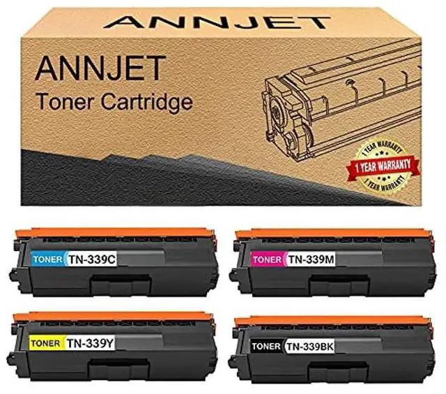 Authenticity certificationANNJETPRINT compatible toner cartridges replacement for TN339BK TN339C TN339M TN339Y are manufactured in an ISO 9001 & ISO14001 certified facility. All Toner Cartridges are engineered to produce superb results. Packing specificationBlack Cyan Magenta Yellow 4-PackPage output 6, 500 pages per black Toner Cartridge, 6, 500 pages per Color Toner Cartridge (Letter/A4 at 5% coverage). Printer compatible modelsBrother HL-L8250CDN HL-L8350CDW/CDWT MFC-L8600CDW MFC-9460CDN MFC-L8850CDW MFC-L8650CDW DCP-9050CDN DCP-9055CDN DCP-9270CDN DCP-L8400CDN DCP-L8450CDW HL-L9200CDW/CDWT MFC-L9550CDW Printers.