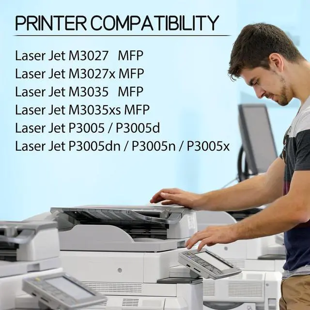 Tips: Please confirm your printer model is in the model list belowCompatible for HP Laser Jet M3027 MFP M3027x MFP M3035 MFP M3035xs MFP / Laser Jet P3005 P3005d P3005dn P3005n P3005x PrinterProduct Information: One black cartridge can print up to 13, 000 pages. (Under condition of 5% coverage in A4 paper). Our products have stable print quality. They print very clearly and dark. They have passed 100% strict quality inspection. Our products are easy to install. Well individual double-layer sealed package contains 1 Pack Q7551X Black Toner Cartridge. Steps on how to install a toner cartridge: 1. Power off the printer and open the front cover. 2. Take out used cartridge from the printer. 3. Remove the toner cartridge from the packaging. 4. Grasp both sides of the toner cartridge, and gently shake the toner cartridge horizontally from side to side to distribute the toner in the toner cartridge evenly. 5. Place the cartridge on a flat surface. Locate the sealing plastic tab of the toner cartridge, and remove it. Then locate the sealing tape on the side of the cartridge and pull the tape straight out (do not pull at an angle). 6. Insert the cartridge in the printer, and push until firmly seated. Close the front cover. Power on the printer.
