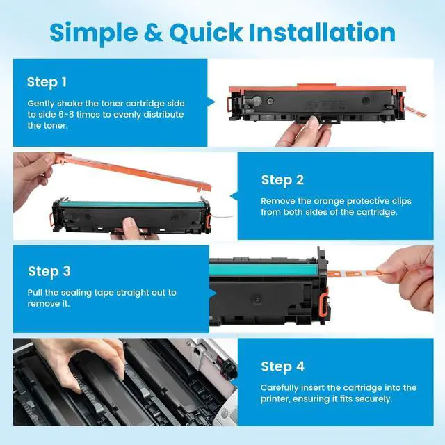 This 4-pack provides exceptional value for high-volume office printing needs. ^^ Professional, Vibrant Print QualityExperience outstanding results with every print. Our premium toner produces sharp, crisp text and brilliantly colored graphics without streaks, smudges, or fading. Perfect for professional reports, presentations, and marketing materials. ^^ Reliable Performance & Satisfaction GuaranteeWe stand behind our quality with a comprehensive satisfaction guarantee. Our toner cartridges are rigorously tested to prevent leaks and ensure consistent, reliable performance. If you have any issues, our responsive customer support team is here to help.