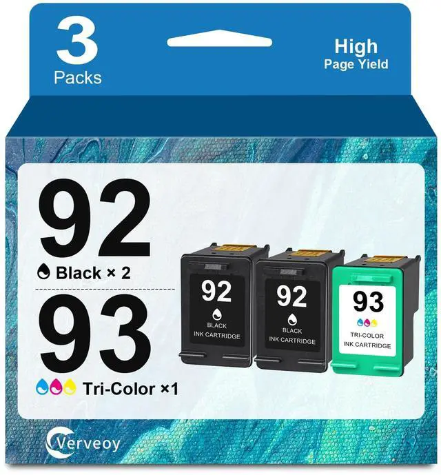 Item Name: Verveoy Remanufactured for hp 92 93 ink cartridge combo pack Replacement for hp printer ink 92 black and 93 color (3-packs) ^^