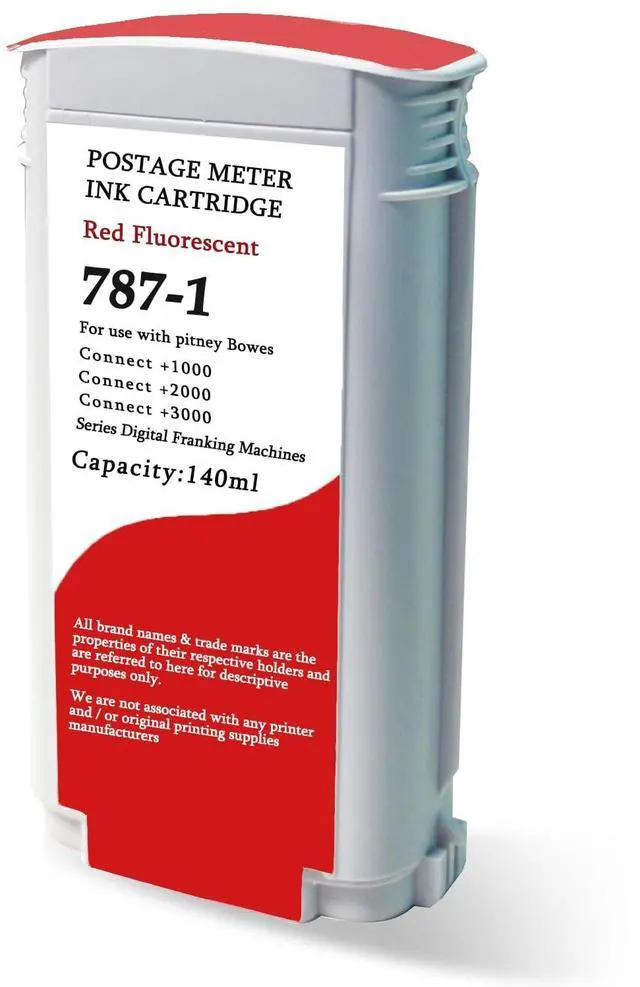 1787-1 Ink Cartridge Fluorescent Red Compatible with Pitney Bowes 787-1 SendPro Connect+ 1000 2000 3000140ML ^^ 2787-1 ink Cartridge the 787-1 red ink cartridge optimizes the number of envelopes you can print with each cartridge, yielding up to 60000 impressions ^^ 3787-1 for pitney bowes inkMeets USPS postal requirements ^^ 4787-1 ink Compatible with Pitney Bowes 787-1 SendPro Connect+ 1000 2000 3000 ^^ 5787 ink cartridge