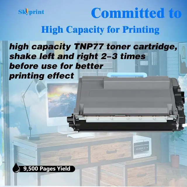 SkyPrint TNP77 black toner cartridge come with intelligent chips that automatically recognize and provide printing , Not damaging the machine, fast installation