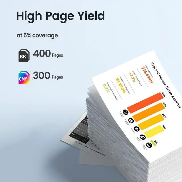 High Page Yield: Black ink is 400 pages & tri-color is 300 pages per cartridge at 5% coverage on letter/a4 ^^ High