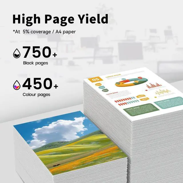 High Page Yield: Up to 750 pages per 67xl black ink cartridge, tri-color cartridge up to 450 pages at 5% coverage (A4/letter)