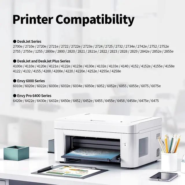 Printer Compatibility: compatible for DeskJet series 2700e, 2710e, 2720e, 2721e, 2722, 2722e, 2723e, 2724, 2725, 2732, 2734e, 2742e, 2752, 2752e, 2755, 2755e, 1255, 2800e, 2800, 2820, 2821, 2821e, 2822, 2823, 2828, 2829, 2842e, 2852e, 2855e printer ^^