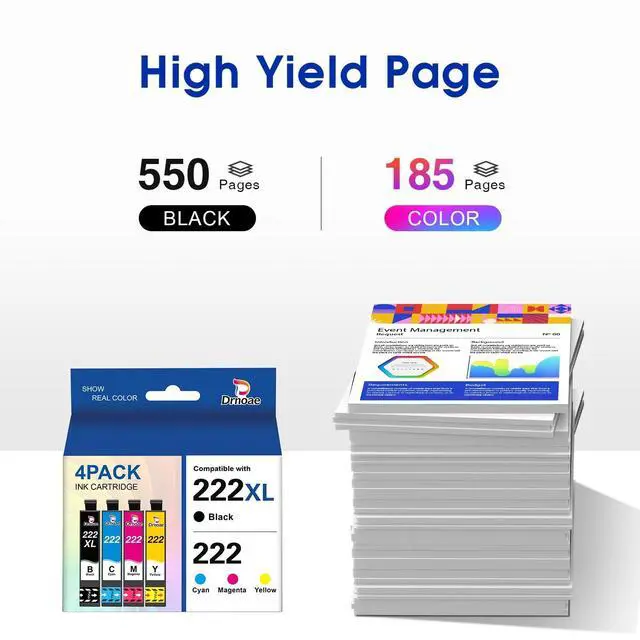 High Page Yield: Up to 550 Pages per 222 222XL Black ink cartridge and Up to 185 Pages per 222 222XL Color ink cartridge Compatible 222XL Ink Cartridges (A4 Letter, at 5 Percent Coverage) ^^
