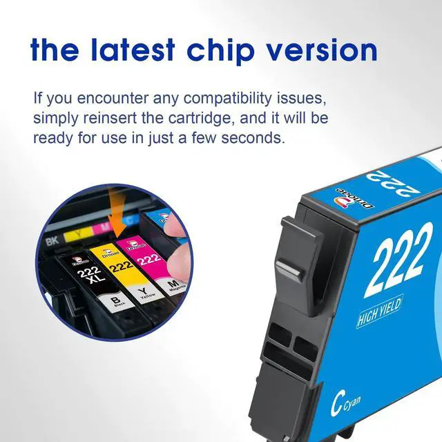 Turn off trouble: Printer auto-updates may interrupt your printing with compatible cartridges when most needed; we recommend turning off the auto-updates to avoid unpleasant surprises, or you can ignore firmware update reminders ^^ Each 222xl ink cartridges Provides our Customers with High Definition Printing Effect, Long Time Non Fading, Fast Printing Speed and High Page Yield