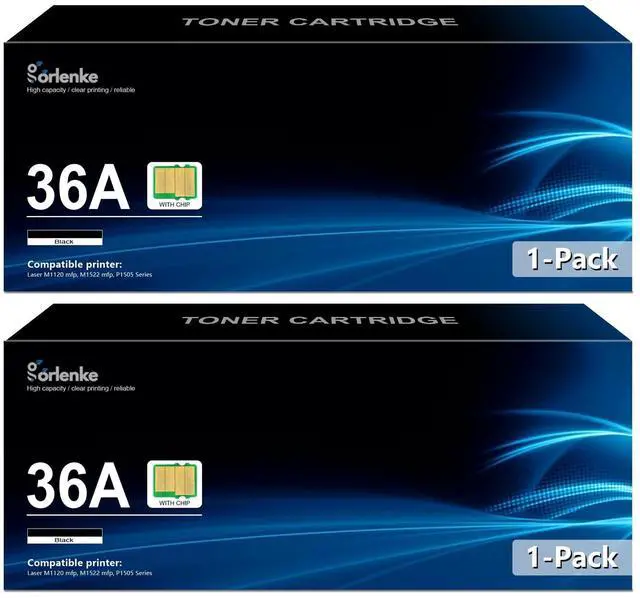 • What's in the box: 36A Black Toner Cartridges 2-pack with Chip (also compatible with Toner Cartridge CB435A/CB436A/CE285A Universal/CRG-125)