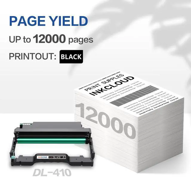 Package Contents: 1 Pack DL-410 drum unit for Pantum laser printer, DL410 drum unit is up to 12, 000 pages per cartridge at 5% coverage (letter/A4) ^^ INKCLOUD DL-410 drum unit is designed to work perfectly with your