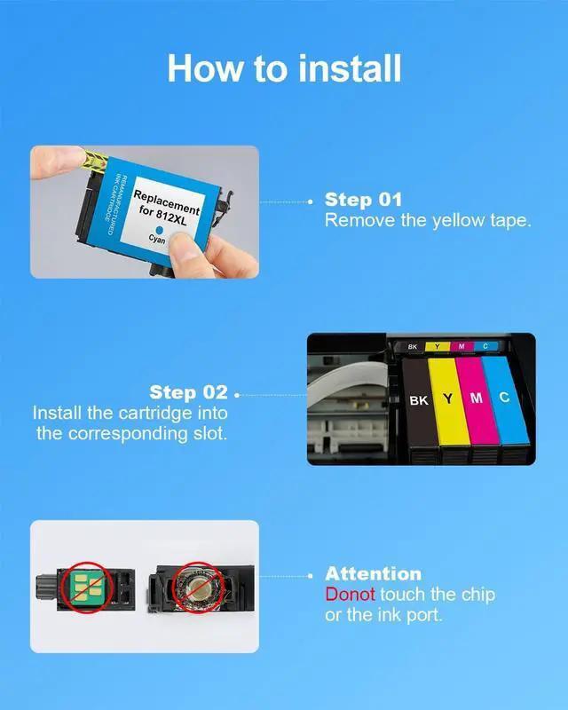 Warm Reminder: Please turn off your printer's automatic firmware update function before using the replacement for 812XL ink cartridges. This prevents the replacement for 812XL ink cartridges from being unrecognized.