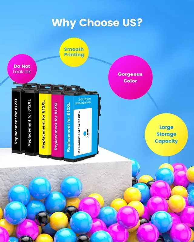 Latest Upgraded Chip: Our remanufactured for epson 812xl ink cartridge combo pack are equipped with he latest upgraded chip to ensure compatibility with the newest Epson printer firmware updates ^^ Replacement for 812XL ink cartridges for Epson compatible