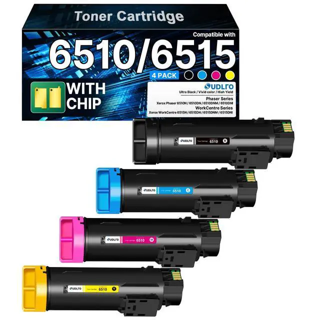 ^^ Package Contents: Phaser 6510 toner Workcentre 6515 toner 4 pack contains 1 Black of phaser 6510 workcentre 6515 toner, 1 Cyan of 6510 6515 toner, 1 Magenta of 6510 6515 Toner, 1 Yellow of 6510 6515 toner ^^ compatible phaser 6510 toner workcentre 6515 toner replacement for Xerox phaser 6510 workcentre 6515 Xerox Phaser 6510dni Workcentre 6515dni toner cartridge