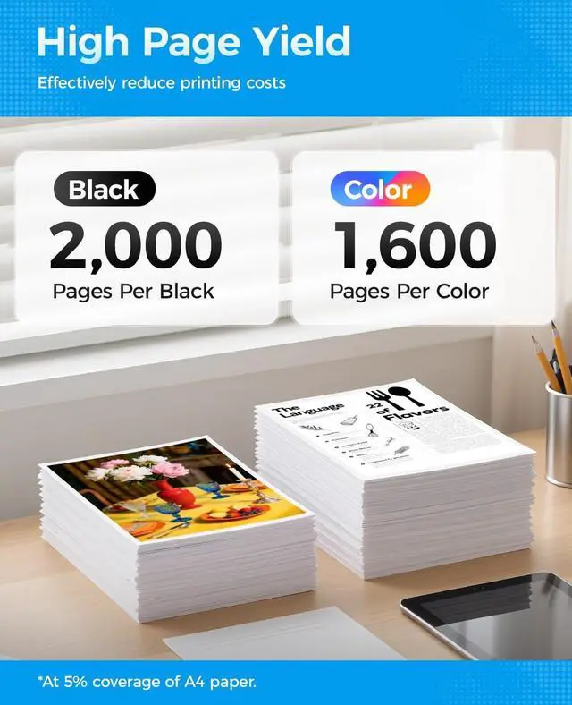 HP+ Subscription Printers: Please note that these 962XL cartridges are not compatible with HP+ (Instant Ink) printers that are activated or enrolled in HP subscription services. ^^ Please Check your Printer model before placeyour order! ^^ Print more with 962XL ink cartridges combo packUp to 1, 200 pages for 962XL Black and 1, 000 pages for 962XL Colors at 5% coverage on A4 paper, Perfect for home, school, or office use. ^^
