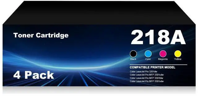 Included items: 1 black, 1 cyan, 1 yellow and 1 magenta 218A Toner Cartridges (No Chip), 1 Manual.