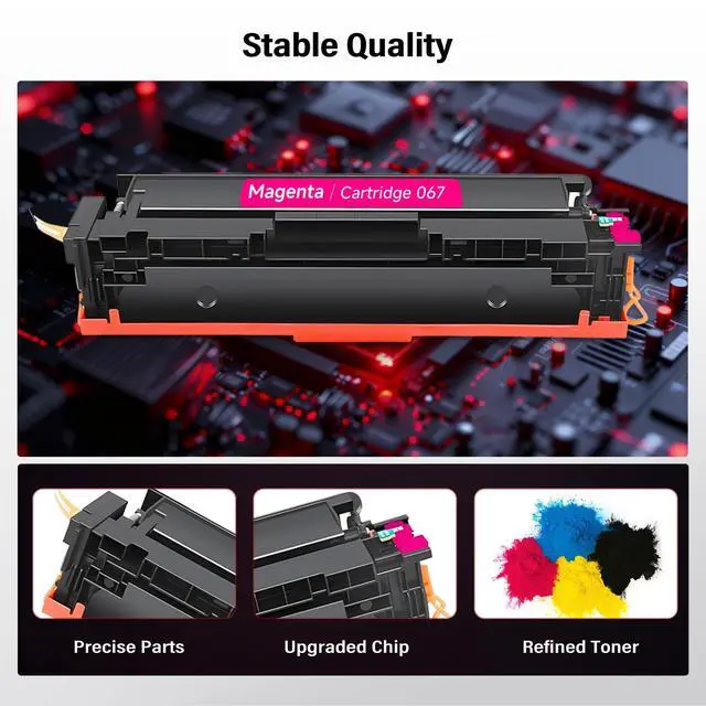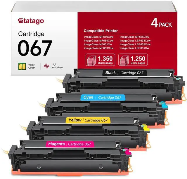 ^^ High Yield: 067 toner cartridge set Up to 1, 350 Pages per Black; Up to 1, 250 Pages for each Color 067 toner compatible for canon MF656Cdw MF654cdw toner cartridges (Letter/A4, at 5% coverage). ^^ High QualityStatago 067 toner cartridges meet the high quality standards, with ISO9001 and ISO14001 certifications. Choose eco-friendly printing solutions that are both reliable and sustainable. ^^ Value 067 Toner Set067 toner cartridges 4 Pack Set compatible for Canon color imageclass mf656cdw mf656cdw Equipped with the latest smart chip to ensure high compatibility and make it easier to use, making your daily printing more professional and easier.