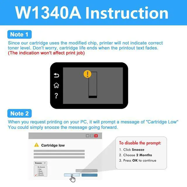 ^^ Reliable Quality: LCL W1340A toner cartridge uses high quality toner, toner particle size distribution, good mobility, high transfer rate, resulting in a clear image and high gloss print effect; Printing efficiency is high, waste powder rate is low, so as to ensure sufficient page yield.
