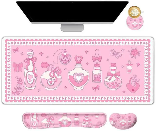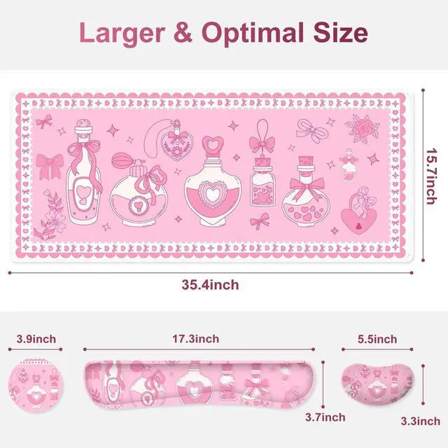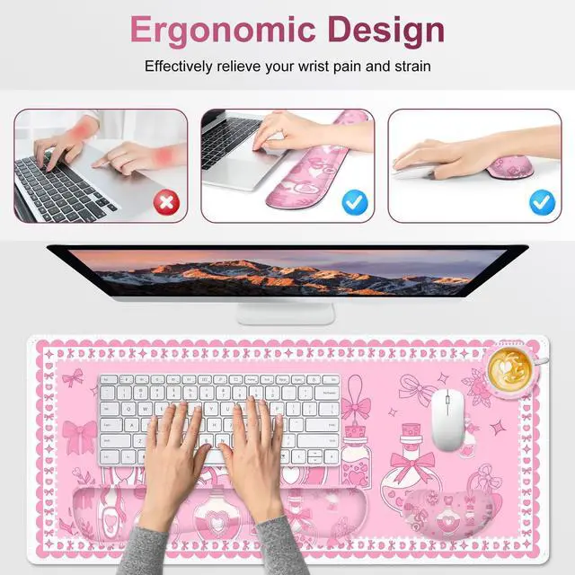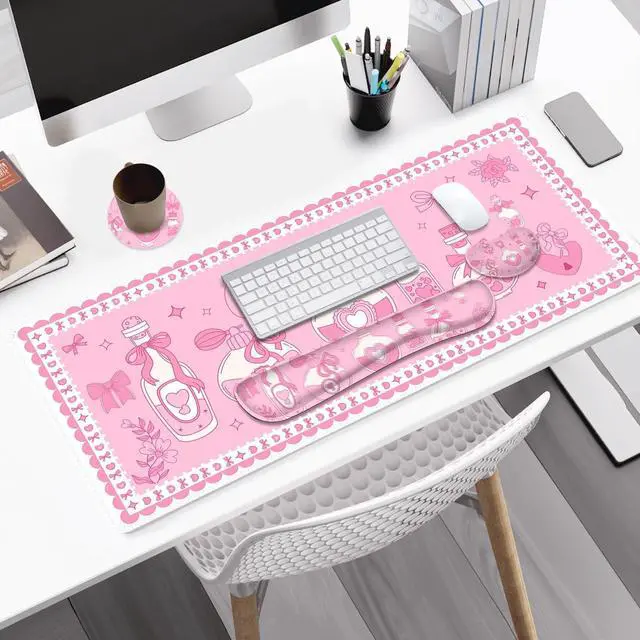 You deserve to have our comfortable typing relief mouse pad set 35.415. 7 IN Desk Mat + Keyboard Wrist Support + Mouse Wrist Rest + Coaster for DrinkMore unique pattern design desk pad set available for choice. A different mouse pad Will add some artistic personality to your life, unique style colors desk mat set will be a chic office desk decor and a good desk organizer, bring you a good mood, and increase work&study efficiency. This office desk accessories will be a wonderful gift for friends, family, classmates, and colleagueFeatures Wrist rest for computer keyboard and mouse with ergonomic design, filled with breathable memory foam materials, plays a role in minimizing discomfort and soreness from work and study.