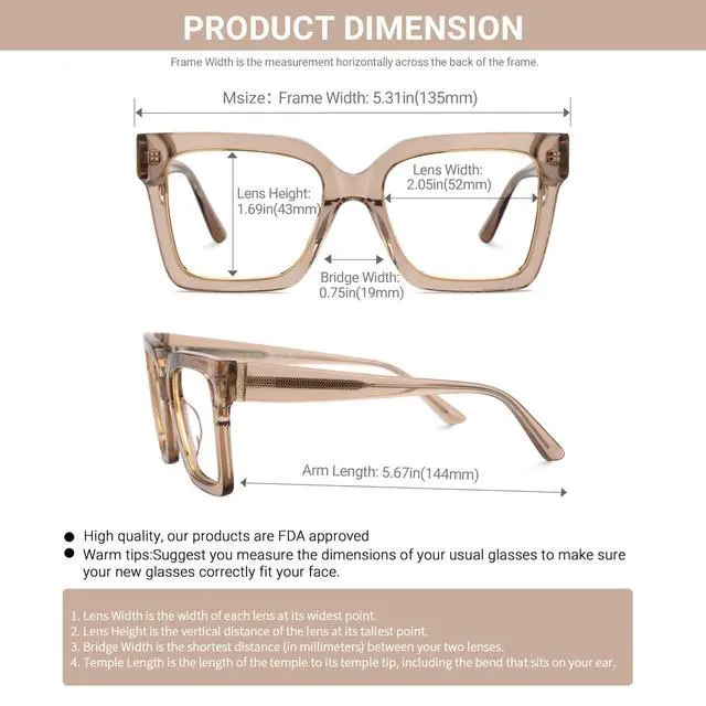 Range: 2.13 " ~ 3.07" /(54~78 mm)Product instruction: (1) Why do we need to filter blue light? Blue light from our computers, phones, tablets, and other electronic products causes our eyes to not only work harder but puts them at risk of aging faster. By wearing blue light blocking glasses, you can limit the amount of blue light that enters your eyes and make your screen time more pleasant. Reduce eye strain, eye fatigue, and sensitivity to light during computer terms or any other digital time. Protect Your Eyes from macular degeneration and early vision loss, more concentrate on working and learning. Vooglam glasses are specially designed to filter out harmful blue light. Reduce the symptoms of digital eyestrainEyestrain, Headaches, sore or tired eyes, and stiff necks are all symptoms of digital eyestrain. Vooglam blue light blocking glasses make screen time more comfortable and help eliminate symptoms of digital eyestrain.
