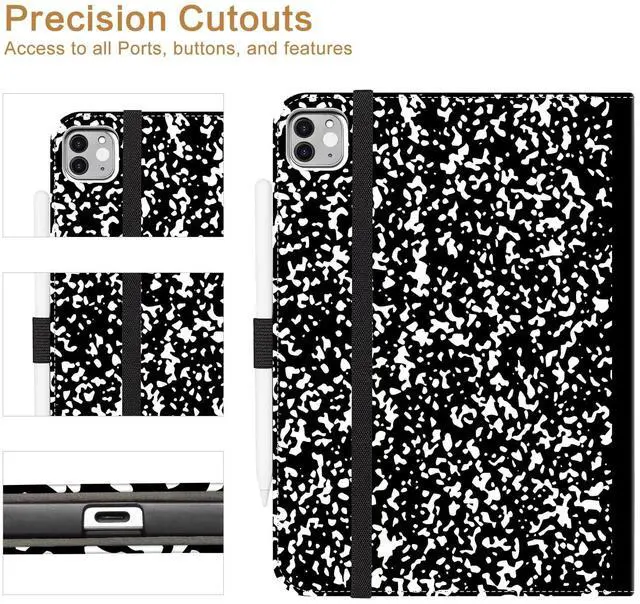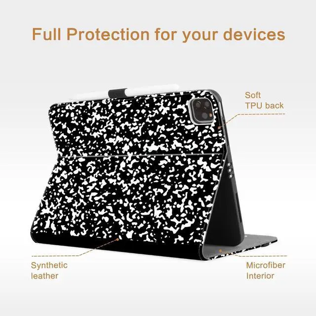 Cutouts & Built-in pencil holder]: Precise cutouts let you access to all ports, speakers, controls and cameras. Built-in pencil holder on the soft back cover for you to grab or carry it easily and conveniently(Note: Pencil is Not included! ) ^^ [Adjustable Angle &
