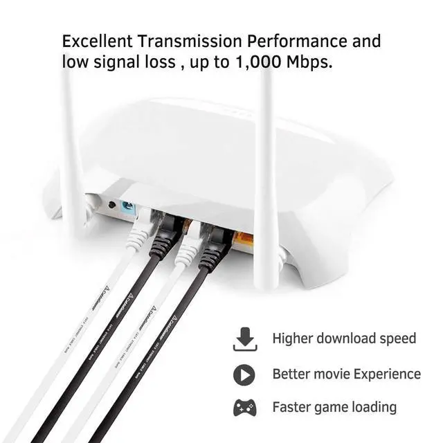 Construction for Reliability: Made of 100% bare copper wire, our UTP (Unshielded Twisted Pair) patch cable ensures superior conductivity. The RJ45 connectors feature gold-plated contacts, molded strain-relief boots, and a snagless design, ensuring a secure connection and preventing signal crosstalk and echo loss.