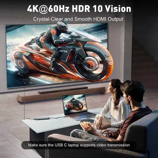 Compared to the common 4K@30Hz products on the market, the higher refresh rate brings drag-free visual enjoyment, compatible with HDMI 2.0 standard, downward adaptable to 1080P@120Hz, more flexible! ^^ Efficient power supply without interruptionIntegrated USB-C PD 3.0 charging port supports 100W high power pass-through charging, which can quickly replenish energy for MacBook Pro, XPS and other devices, and at the same time provide power supply for external hard disk, keyboard and mouse, etc., to solve the anxiety of power consumption of multiple devices. Intelligent shunt technology ensures stable charging, even when running at full capacity, it does not affect the performance of other ports, truly realizing use while charging.