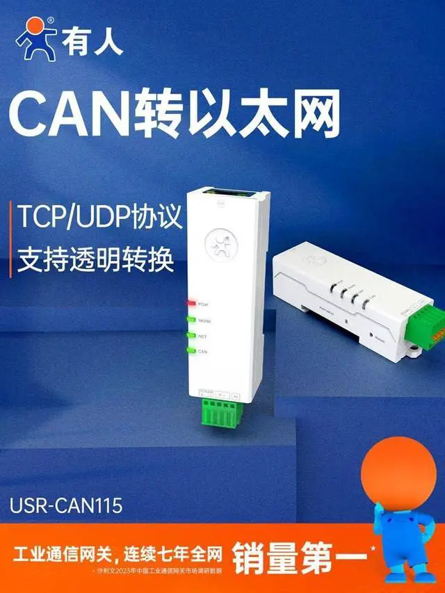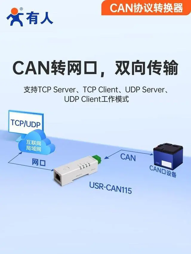 The USR-CAN115 is an ultra-small CAN TO Ethernet converter that supports data communication and conversion between CAN and Ethernet interfaces. For the CAN interface, this device meets the specifications CAN 2.0A and CAN 2.0B.