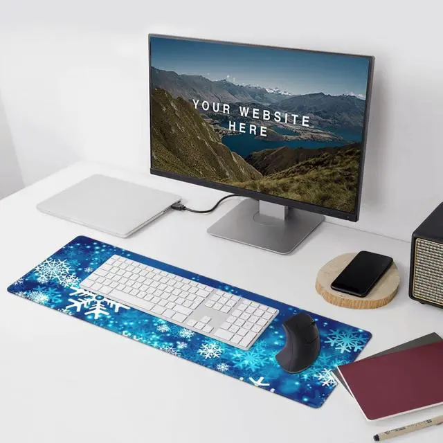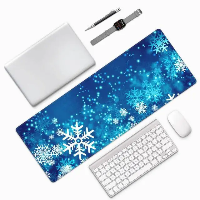 Famame Laptop Mouse Pad Christmas Abstract Winter Snowflakes Desk Mat with Stitched Edges 31.5X 11.8 inch Non-Slip Large Keyboard Rubber Writing Table Mat for Office Home