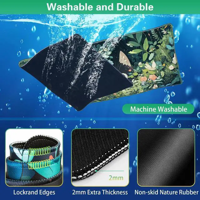 The soft and smooth desk mat surface is super manipulative and provides an excellent balance between sliding and control, greatly improving control precision and speed at work or play. Water-resist Coating and Stitched EdgesThe water resistant coating effectively prevents damage caused by splashing water or drinks, you no longer have to worry about beverages or coffee seeping into the mouse pad, hand sweat an dust are easier to clean, you just need to clean with a wet towel, very simple, convenient and fast. Non-Slip Rubber BaseThe bottom base of gaming mouse pad is made of good natural rubber, which is no harm to human heath.