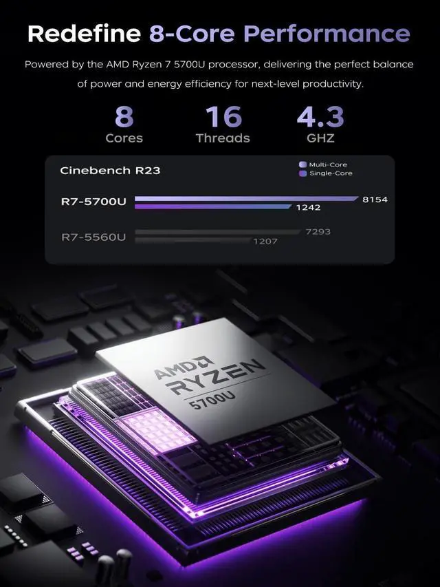 AMD Ryzen7 Processor: MALLRACE Windows 11 laptop is equipped with AMD Ryzen7 5000 Series with 8 cores and 16 threads at up to 4.3 GHz, which is able to easily cope with the processing of complex work, ensure smooth processes and provide stable and efficient work.