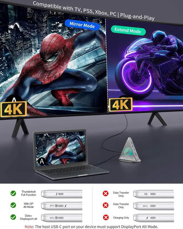 Note: The host USB-C port on your device must support DisplayPort Alt Mode. ^^ Powerful 100W