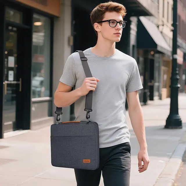^^ Protection: A thick inner strip on the right side of the laptop bag, which can protects your laptop from scratches from zippers and provides partial impact protection, so your laptop is completely protected.