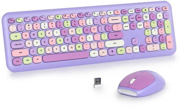 Multi-functional Hotkeys: Why not make working and learning easier? With 15 hotkeys and a numeric keypad, this retro keyboard and mouse wireless set is fully prepared for better study and work. Multimedia hotkeys provide easy access to multimedia such as music, volume, e-mail, etc ^^ Ergonomic Purple Keyboard and