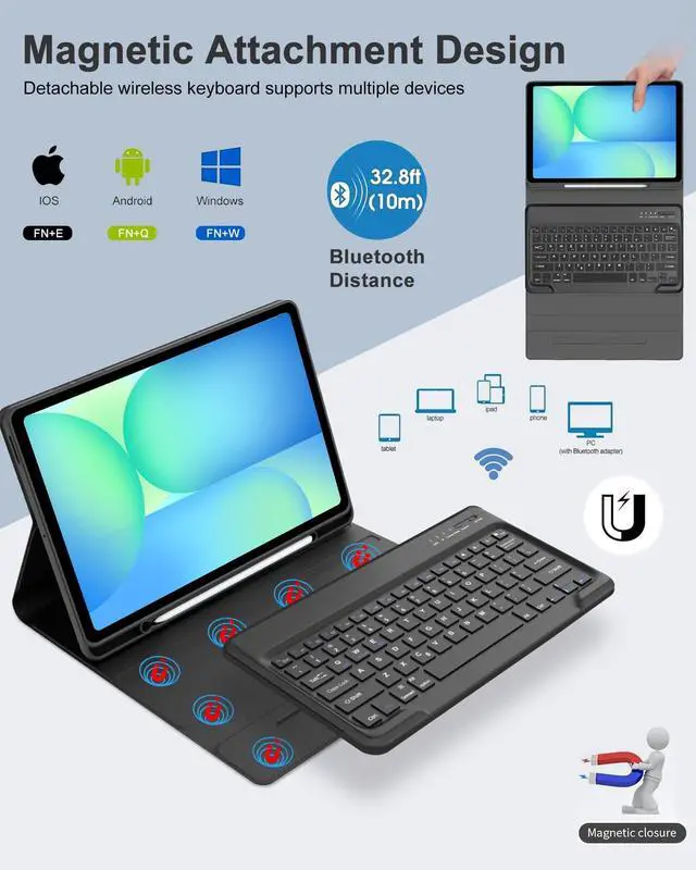 Perfect for working, writing, reading or watching videos. 360 Protection for TabletFor samsung tablet keyboard case features a sturdy high-quality PU shell and soft anti slip rubber lining inside, providing comprehensive protection for your tablet. Portable Shortcut KeysThe slim keyboard for 2025 galaxy tablet has shortcut function keys, allowing you to enjoy the excellent versatility for typing, reading and gaming. Auto Sleep & Wake FunctionFor samsung s10 fe plus keyboard with pencil holder will automatically put the tablet screen to sleep or wake up when you open or close it, which helps protect and save battery life, extending the time you use your tablet.