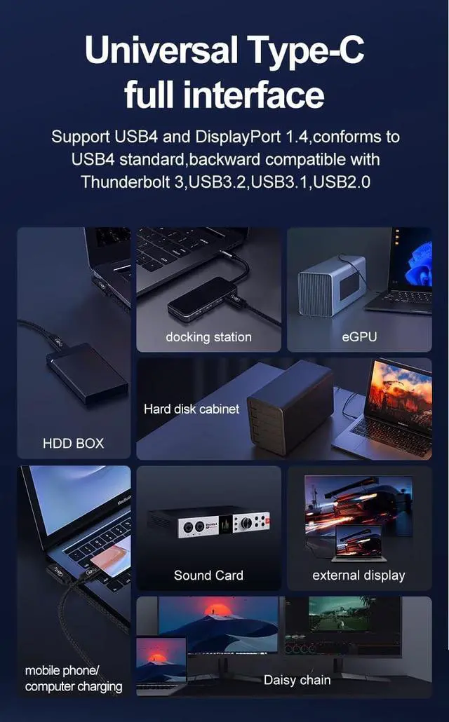 Compatible with a vast array of devices, this cable is the only one youll need to keep all your tech gear connected and charged. Upgrade to our USB4 Cable and experience the difference in speed, quality, and convenience today!